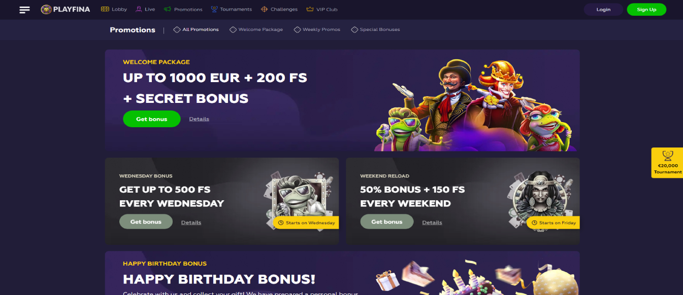 Sign-Up Bonus: Get rewarded just for creating an account with PlayFina. Enjoy a generous bonus without having to make a deposit!
